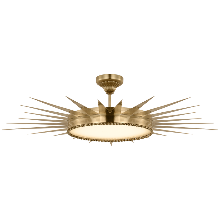 Soleil 45" Semi-Flush Mount in Hand-Rubbed Antique Brass with White Glass