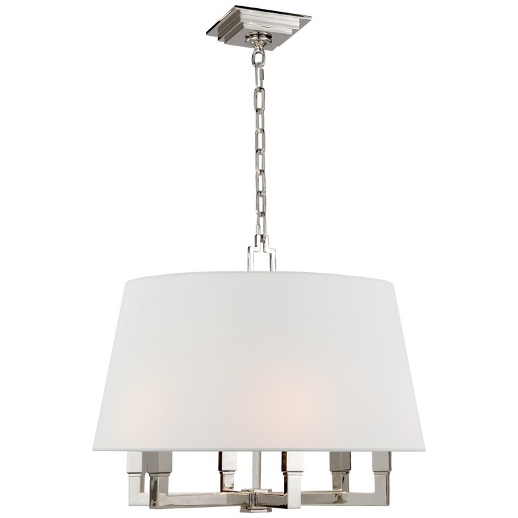 Square Tube Hanging Shade in Polished Nickel with Linen Shade Open Box