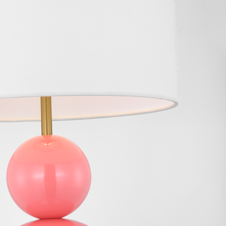 The Suki Medium Table Lamp by kate spade new york reimagines minimalism with a twist. Featuring an elegant, sculptural design, this lamp pairs smooth, round metal shapes in a stacked form to create a statement piece that is both modern and sophisticated. Available in a range of striking finishes—including Navy, Gloss Black, Coral, Blush, Green, and Burnished Brass—this lamp complements a variety of interior design styles, from mid-century modern to contemporary and even eclectic interiors. The white linen drum shade diffuses light softly, adding warmth to the design, while the clean lines and geometric shapes give it a timeless quality. Dry-rated for versatile use, the Suki lamp is perfect for living rooms, bedrooms, or home offices, bringing elegance and a touch of artistic flair wherever placed.