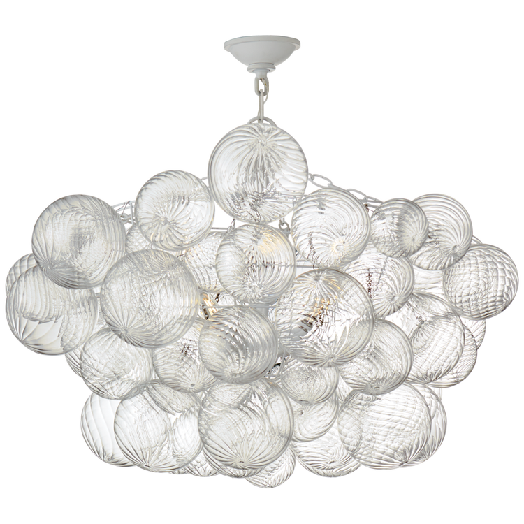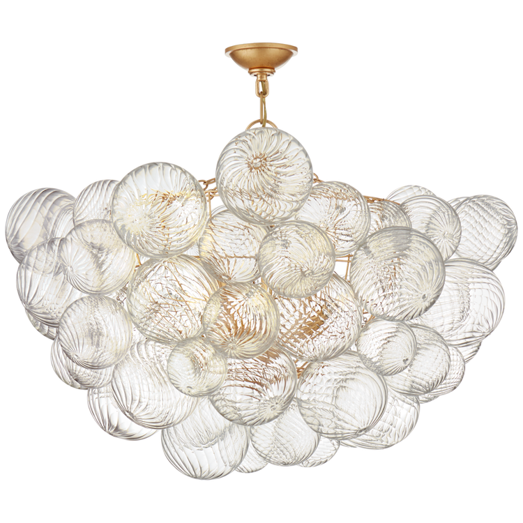 Artisanal glass elevates the Talia series by Julie Neill for a new take on the simple glass globe light fixture. Light shimmers through multiple swirled glass orbs attached to metal baskets, creating a whimsical flourish. Available in a range of sizes and configurations, the Talia series adds a dynamic mix of sparkling glass, rounded forms, and bright metals to any interior. Choose a chandelier for entryways and dining areas, flush-mounts or wall sconces for living spaces or bedrooms, and add a playful, feminine touch to any space.