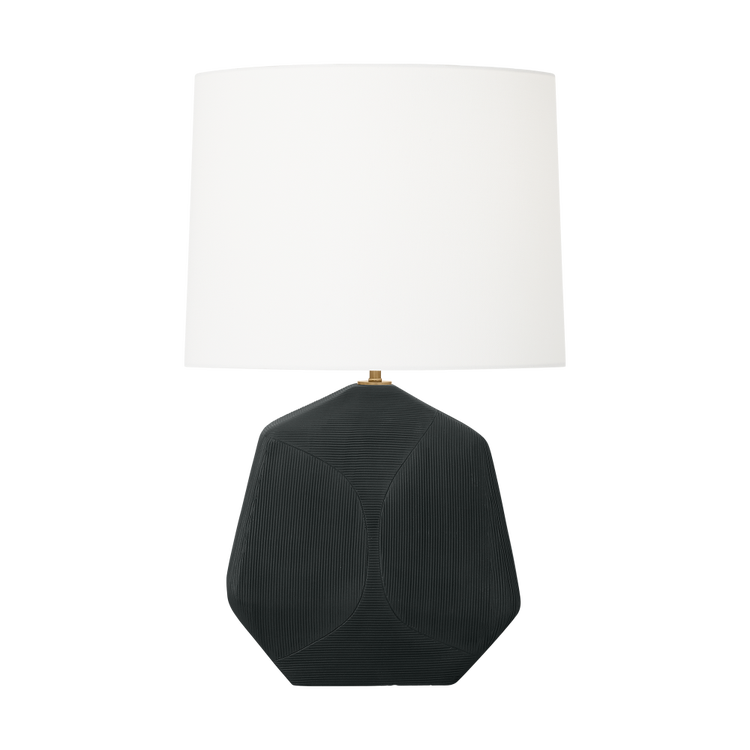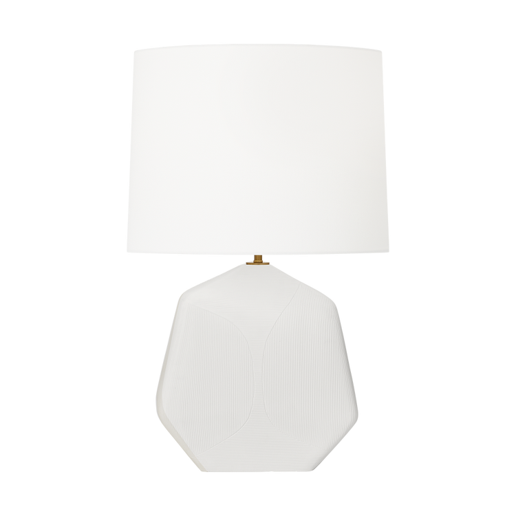 The Tallulah Medium Table Lamp is a statement piece with a sculptural body etched in delicate geometric patterns, adding an artisanal touch to any room. Available in Matte Black or Matte White Ceramic, its understated beauty is complemented by a white linen drum shade that gently diffuses light, enhancing the ambiance. Dry-rated and perfect for adding a touch of global sophistication, the Tallulah Table Lamp brings refined elegance to your living room, bedroom, or office.