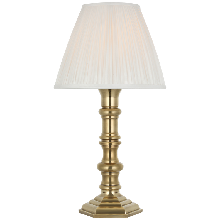 Thatcher 21" Cordless Table Lamp in Natural Brass with Silk Pleated Shade RL 3056NB-SP-CL