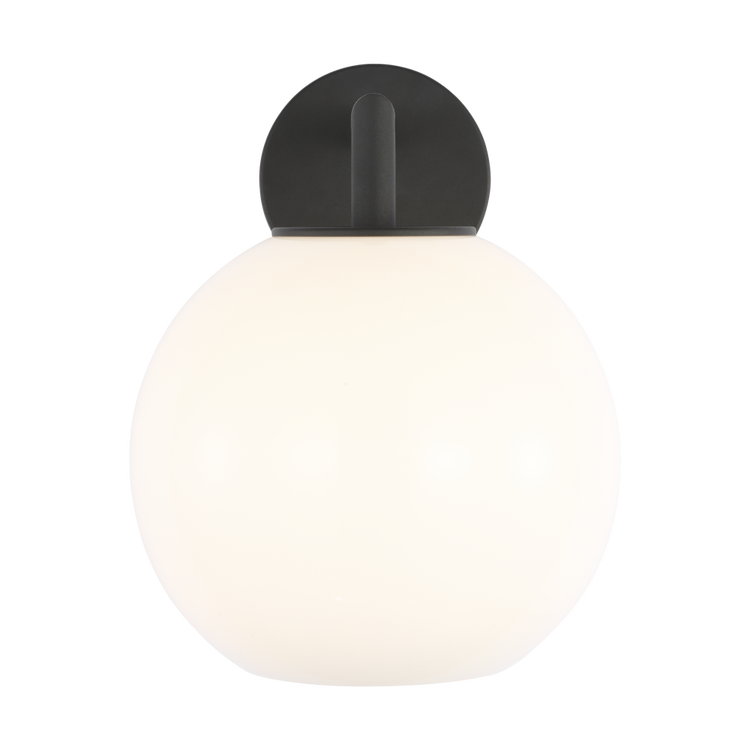 The Toca Medium Outdoor Lantern balances geometric restraint with softened contours. A precise right-angle arm extends from a circular backplate, supporting a gently rounded milk glass shade that diffuses light evenly. Toca integrates clean lines with a diffused glow suited to patios, entryways, and terraces. Its compact form and consistent material palette offer durable performance and broad versatility across exterior applications.