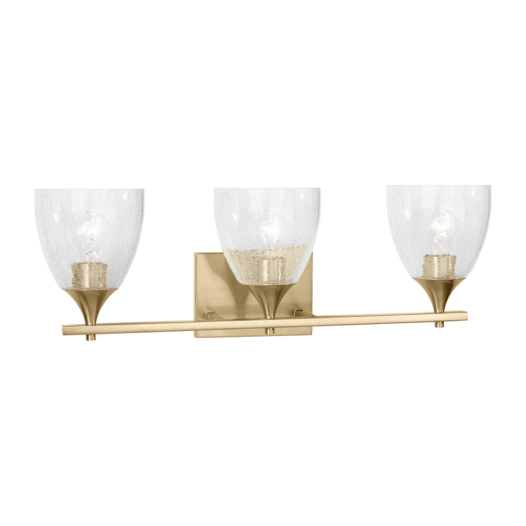 Toffino 3-Light Bath Sconce in Satin Brass with Clear Crackle Glass