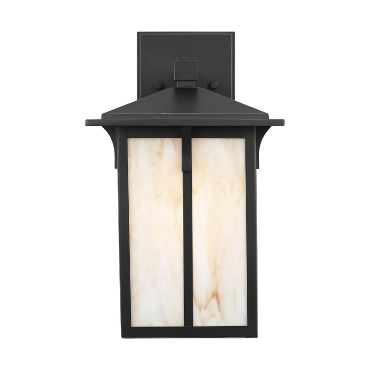 Inspired by traditional Asian garden lanterns, the Tomek Medium Lantern is defined by crisp geometry and iridescent tea glass panels. The collection softens light while maintaining clear structural intent. Square backplates and sturdy metal frames reinforce its architectural simplicity. Tomek is offered in wall-mounted or post configurations. Wet-rated for lasting outdoor use, it brings quiet refinement to entryways, patios, and garden paths.