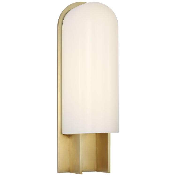 Trouve 14" Sconce in Antique-Burnished Brass with White Glass