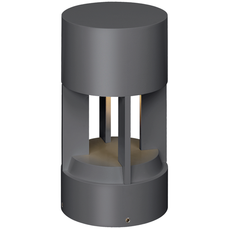The Turbo outdoor LED path light by Sean Lavin features a clean, cylindrical silhouette highlighted with decorative fins evenly spaced around the circumference which create beautiful geometric shapes when illuminated by the powerful LED light source shining down from the crown. Available in modern finish options. The Turbo path light features stainless steel hardware and impact-resistant, UV stabilized acrylic lensing for added durability and stability.