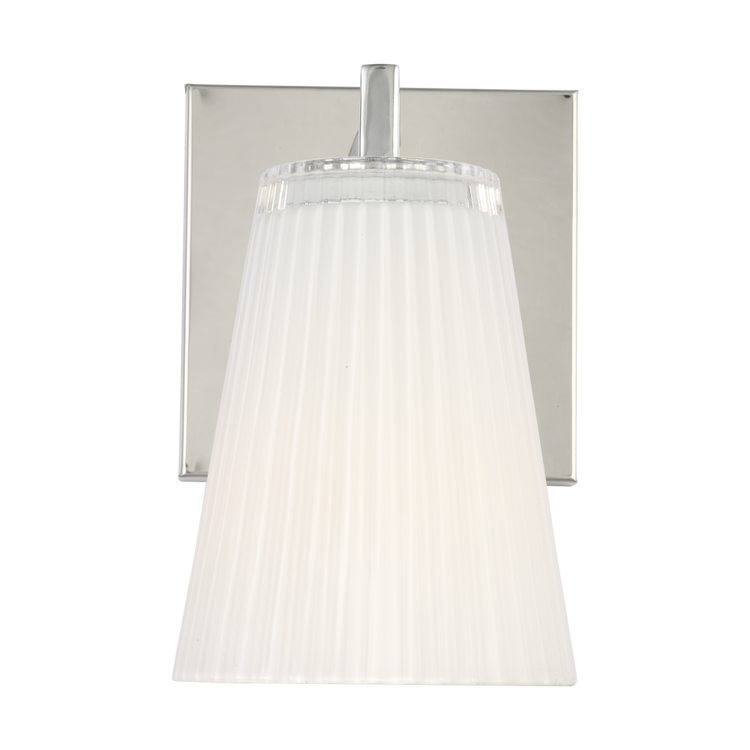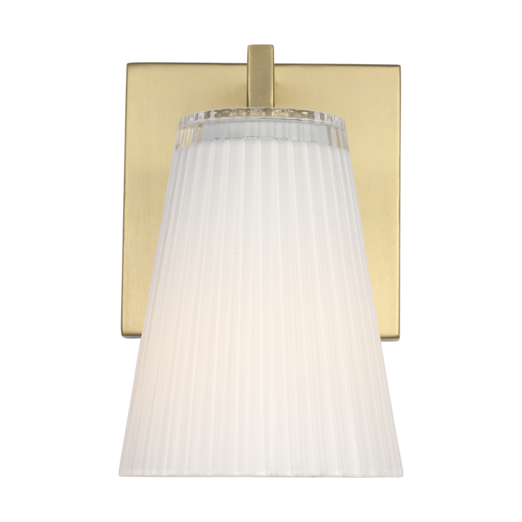 The Upson Small Vanity introduces a refined approach to bath lighting with its vertically fluted glass shades and soft white interior finish. The fluted texture on the clear outer surface creates controlled diffusion, while the inner white layer tempers brightness, resulting in a softened, dimensional glow. Each fixture is anchored by a rectangular backplate and metal hardware. With configurations ranging from one to four lights, and the flexibility to mount shades up or down, Upson adapts seamlessly to powder rooms, guest baths, or primary suites.