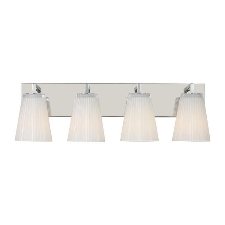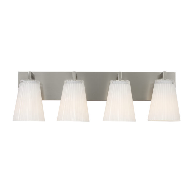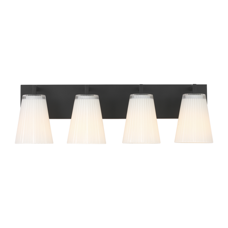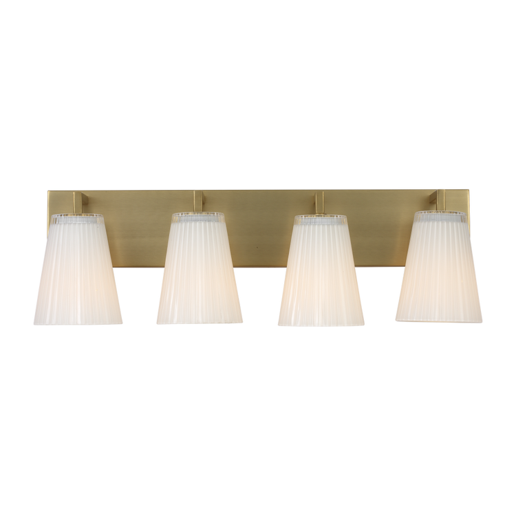 The Upson Extra Large Vanity introduces a refined approach to bath lighting with its vertically fluted glass shades and soft white interior finish. The fluted texture on the clear outer surface creates controlled diffusion, while the inner white layer tempers brightness, resulting in a softened, dimensional glow. Each fixture is anchored by a rectangular backplate and metal hardware. With configurations ranging from one to four lights, and the flexibility to mount shades up or down, Upson adapts seamlessly to powder rooms, guest baths, or primary suites.