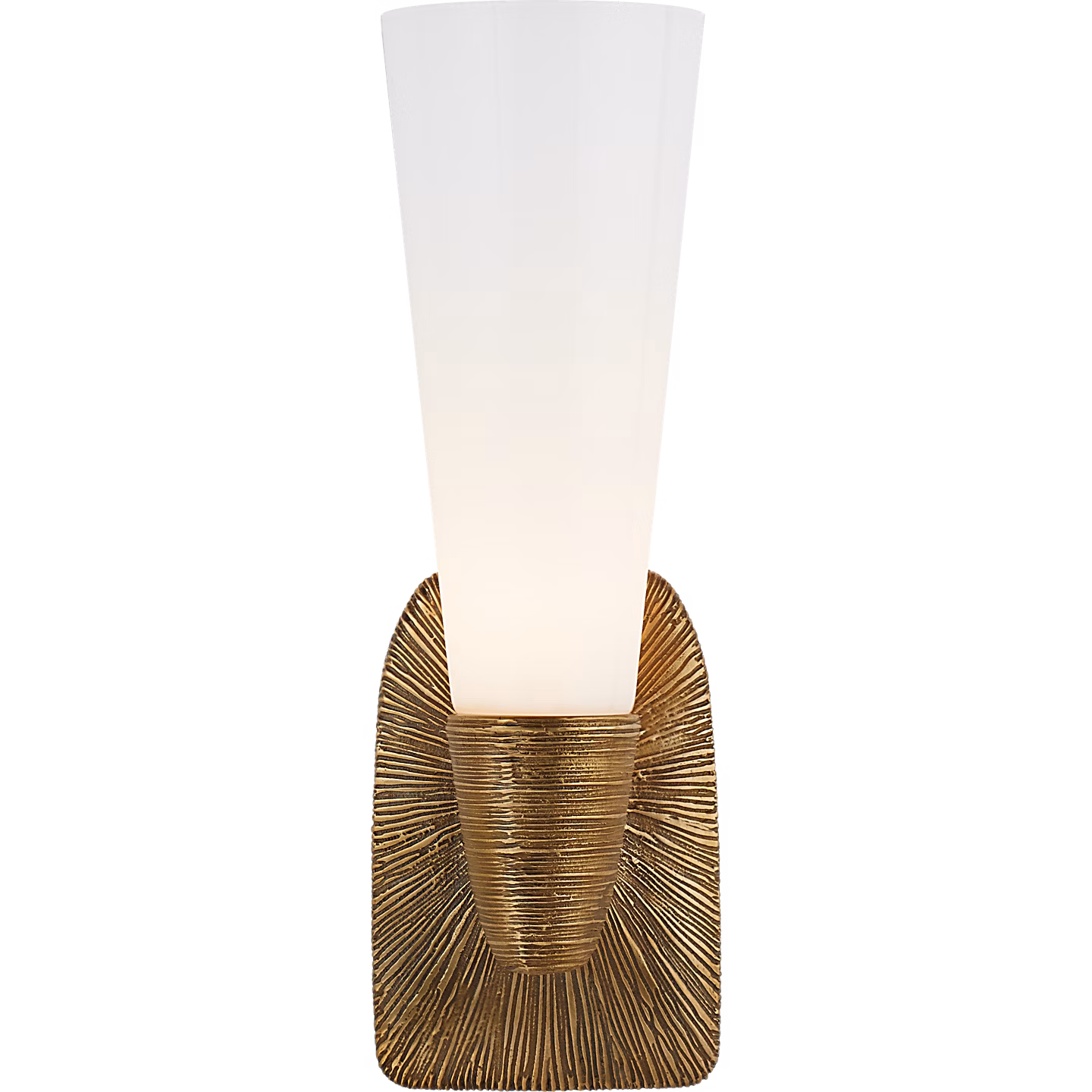 Utopia Small Single Bath Sconce in Gild with White Glass