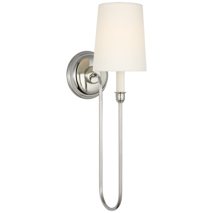 Vendome 21" Deep Arm Cordless Sconce in Polished Nickel with Linen Shade