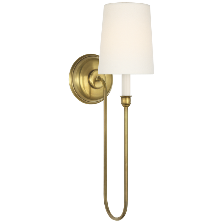 Vendome 21" Deep Arm Cordless Sconce in Hand-Rubbed Antique Brass with Linen Shade