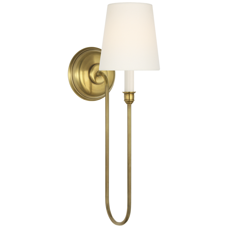 Vendome 21" Deep Arm Sconce in Hand-Rubbed Antique Brass with Linen Shade