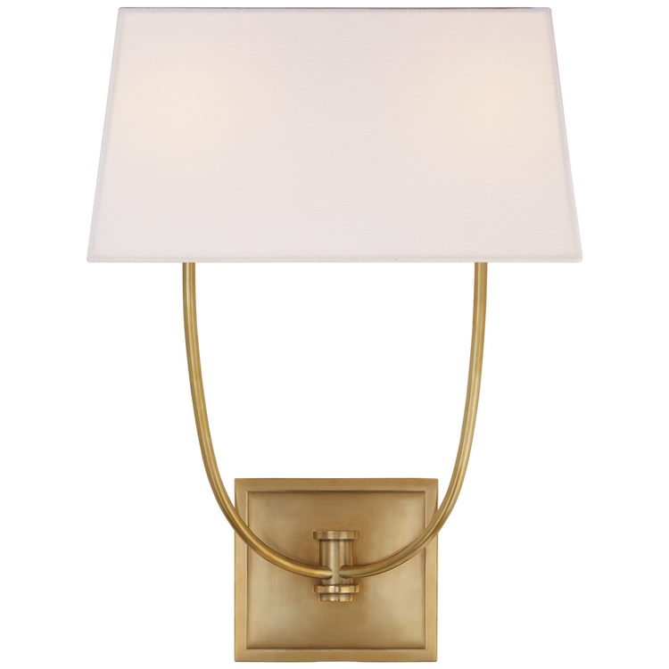 Venini Double Sconce in Antique-Burnished Brass with Linen Shade Open Box