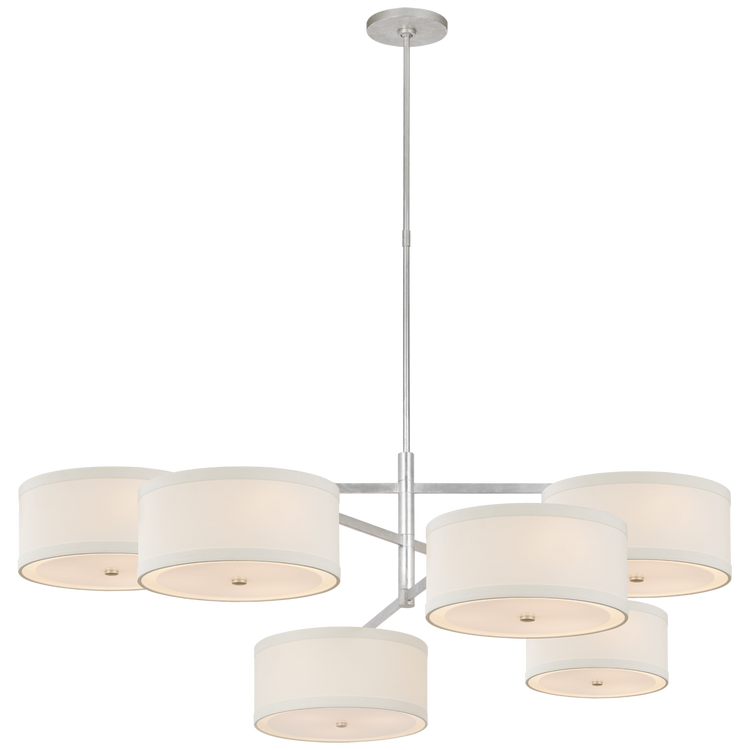 Walker Grande Offset Chandelier in Burnished Silver Leaf with Linen Shades Open Box