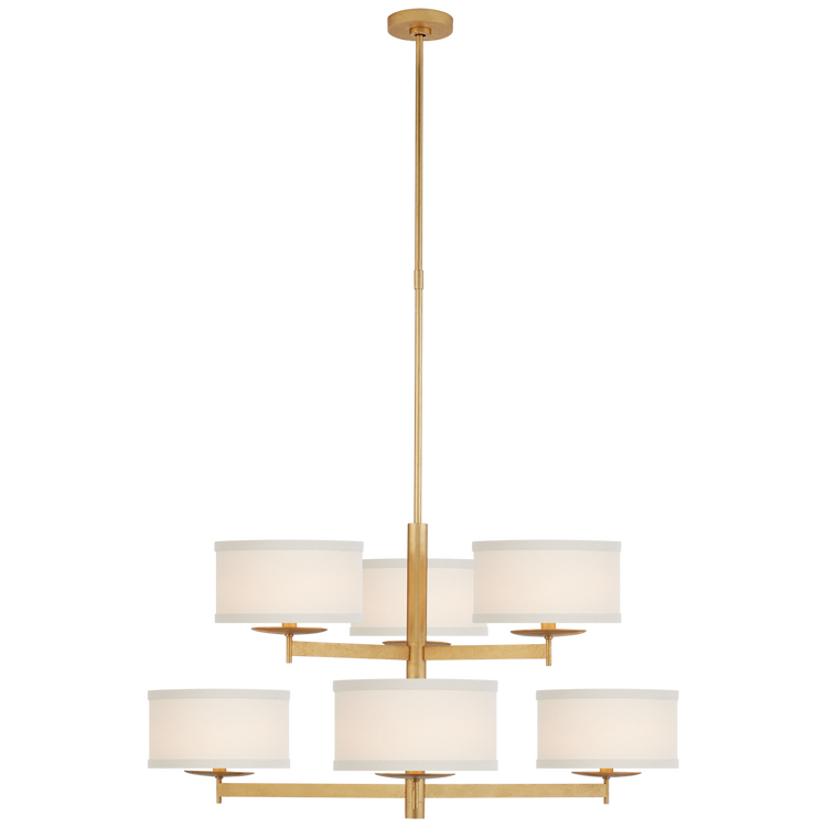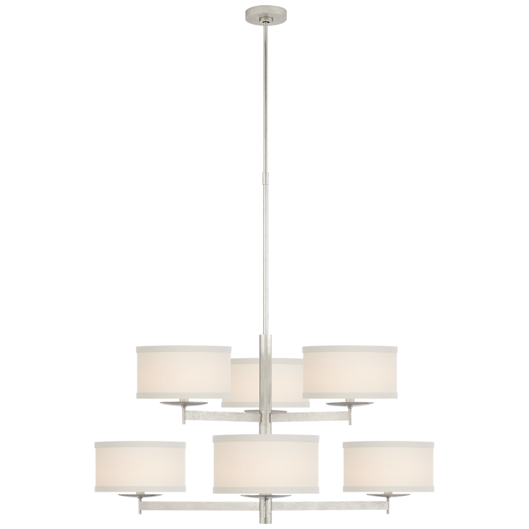 Walker Medium Two Tier Chandelier in Burnished Silver Leaf with Cream Linen Shades Open Box