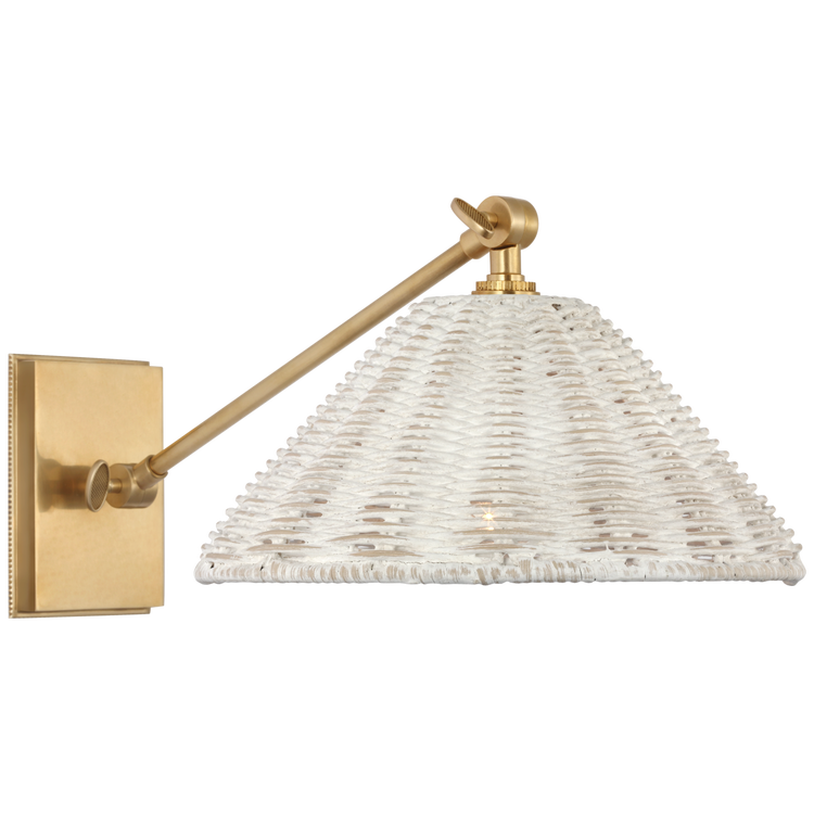 Wimberley Single Library Wall Light in Soft Brass with White Wicker Shade Open Box