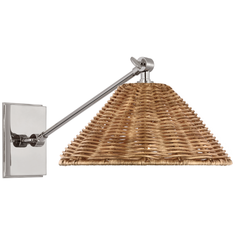 Wimberley Single Library Wall Light in Polished Nickel with Natural Wicker Shade Open Box