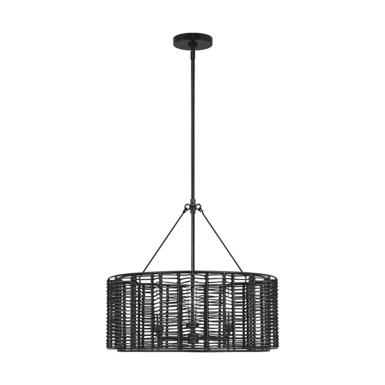 The Winslow Medium Hanging Shade by Thom Filicia redefines the timeless chevron motif with a bold, three-dimensional design that brings texture and depth to any space. The intricately woven strands form a striking silhouette that surrounds an interior candelabra, allowing light to filter through and create captivating patterns and shadows. This innovative take on a classic design lends a contemporary edge while maintaining a sense of timeless elegance. Whether hung as a statement piece in a dining room, layered in a cozy living area, or outdoors under a covered patio, the Winslow Medium Hanging Shade is a versatile choice that seamlessly blends with any style.