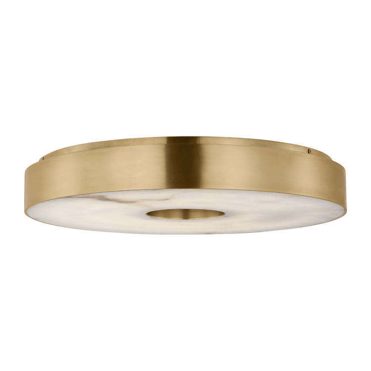 The Wyllis flush mount by Kelly Wearstler is structured and refined, this collection pairs solid brass hardware with natural alabaster diffusers. Both functional and decorative with a design that reflects modern art when off and functional lighting when turned on. Offered in modern finishes.