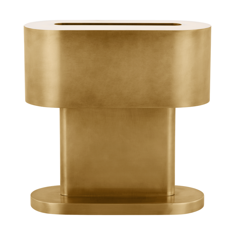 The Wyllis Accent Table Lamp by Kelly Wearstler is structured and refined, this clean-lined table lamp pairs a wide base with a natural alabaster diffusor. This fixture is functional and decorative with a design that reflects modern art when off and functional lighting when turned on. An integrated 3-step touch-dimmer is conveniently embedded in the design to achieve your desired ambiance. Offered in modern finishes.