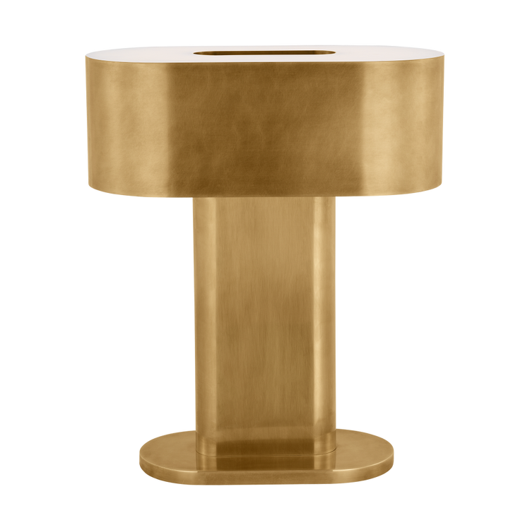 The Wyllis Medium Table Lamp by Kelly Wearstler is structured and refined, this clean-lined table lamp pairs a wide base with a natural alabaster diffusor. This fixture is functional and decorative with a design that reflects modern art when off and functional lighting when turned on. An integrated 3-step touch-dimmer is conveniently embedded in the design to achieve your desired ambiance. Offered in modern finishes.