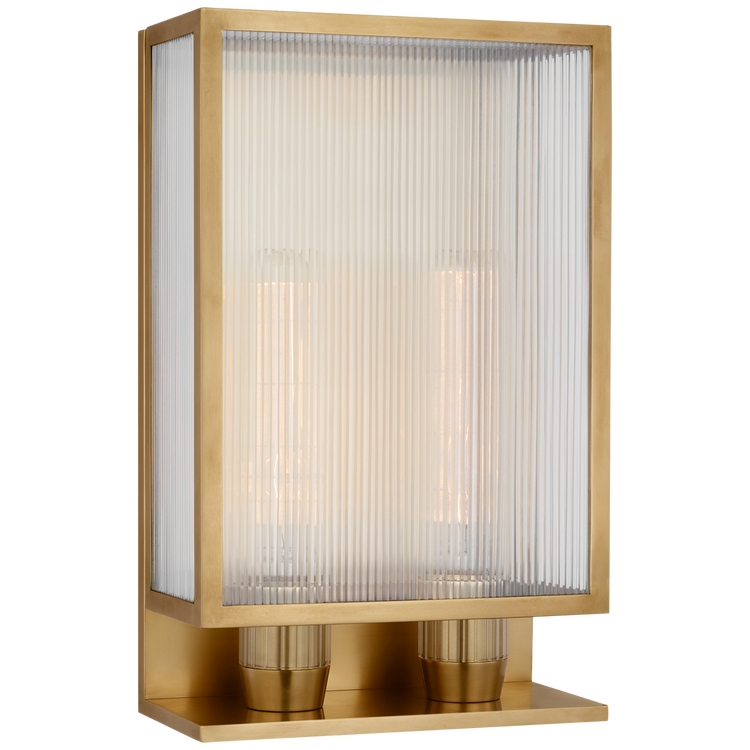 York 16" Double Box Outdoor Sconce in Soft Brass with Clear Ribbed Glass