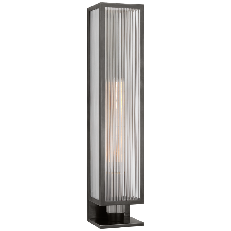 York 24" Single Box Outdoor Sconce in Bronze with Clear Ribbed Glass