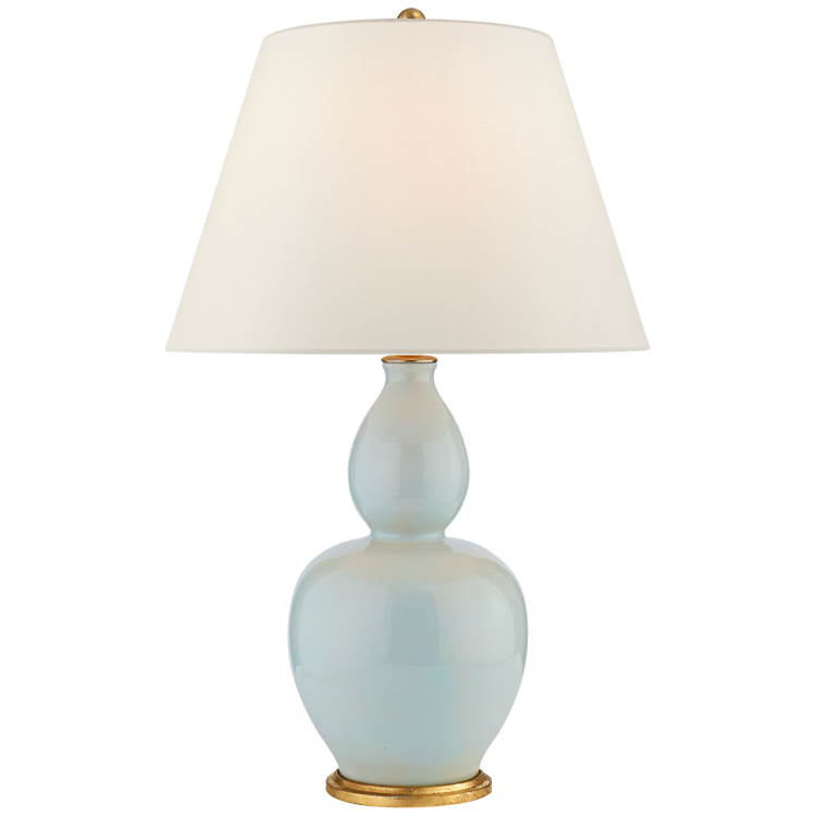 Yue Double Gourd Table Lamp in Ice Blue with Linen Shade Open Box